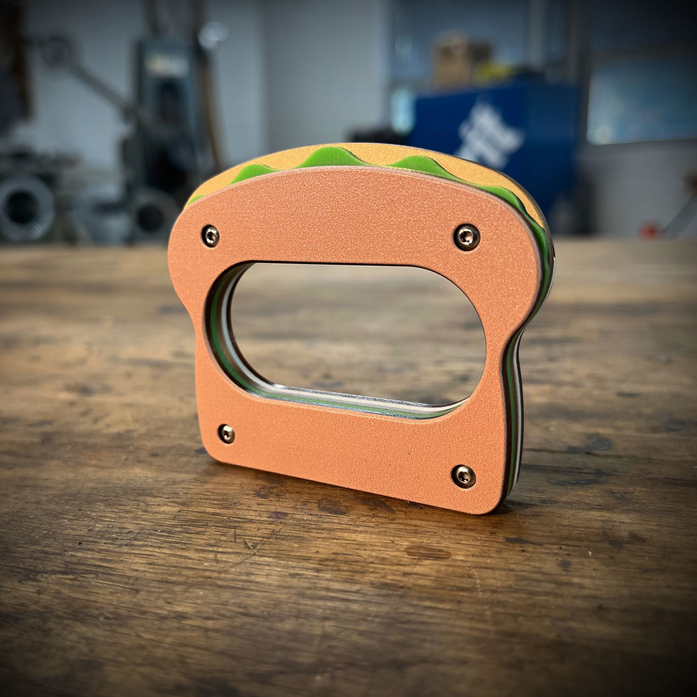 The Knuckle Sandwich takes a viral idea and turns it into a refined collectible—crafted with layered aluminum and G10 for a unique blend of humor and craftsmanship. Built to spark conversation and made to last. And with each one sold, we provide a real sandwich to someone in need.